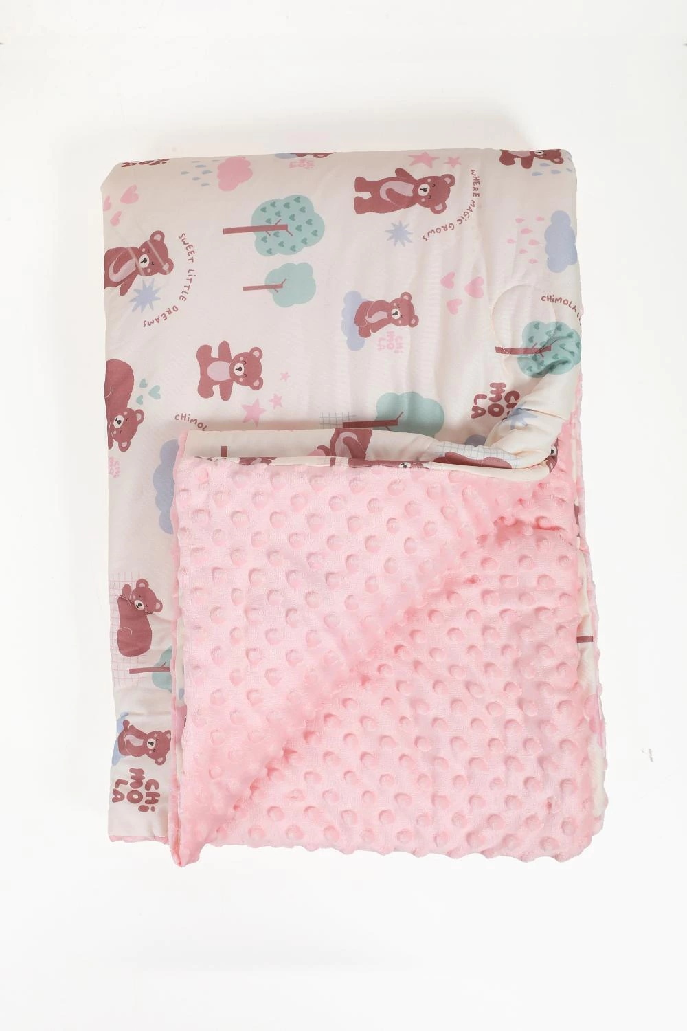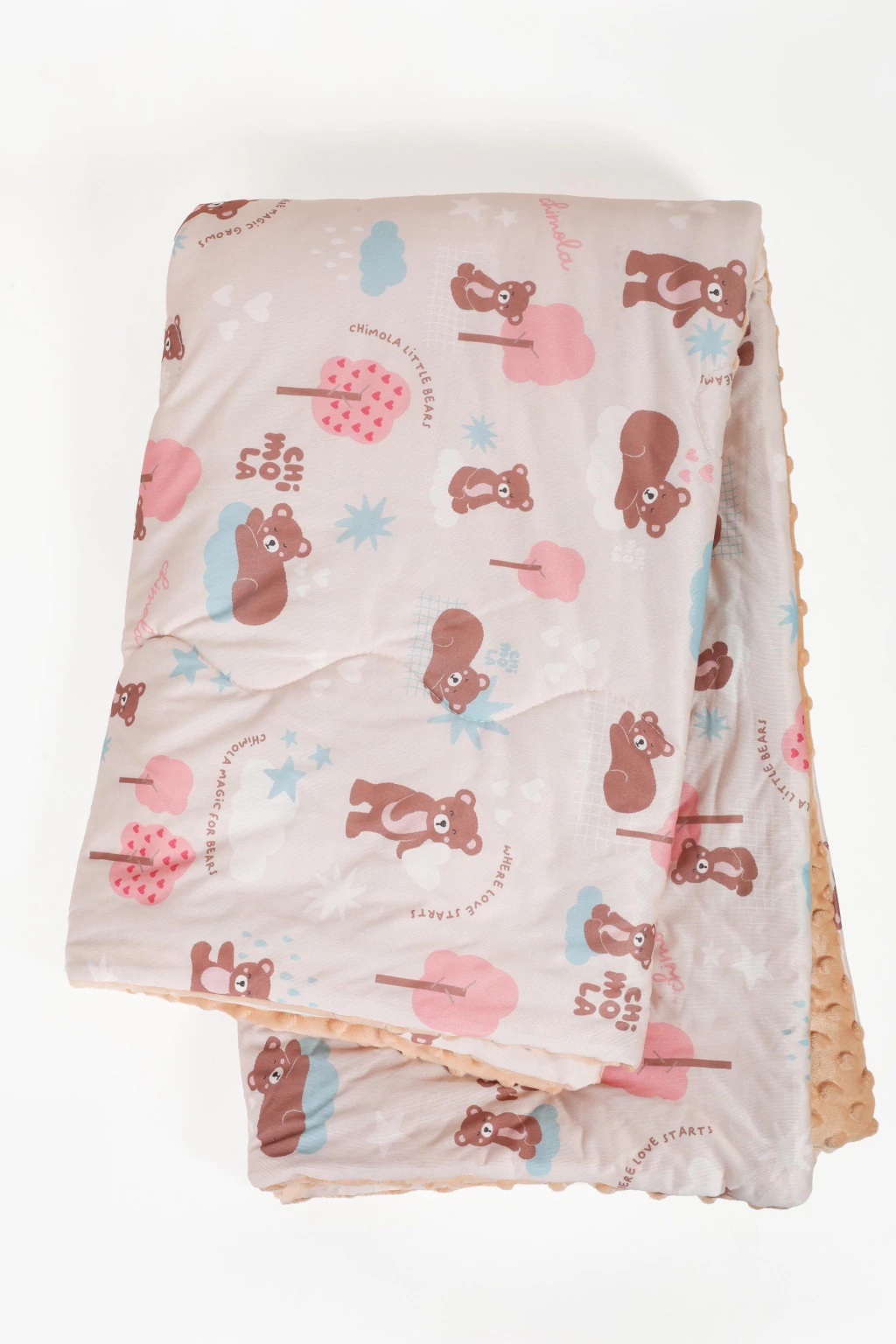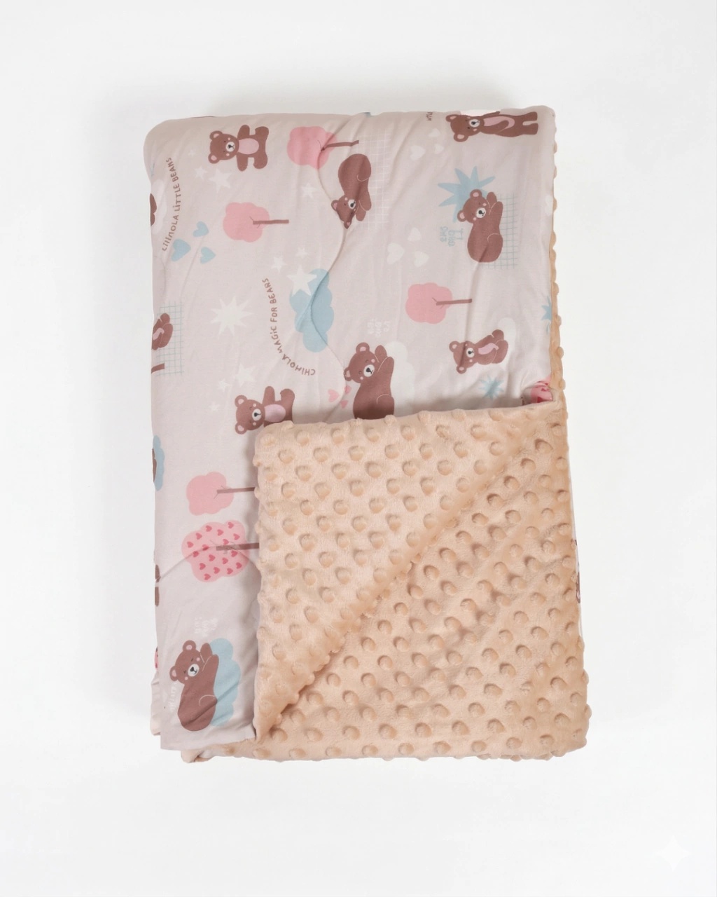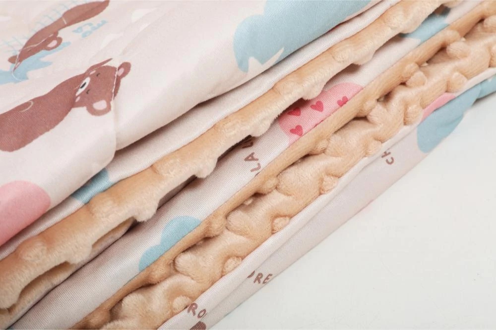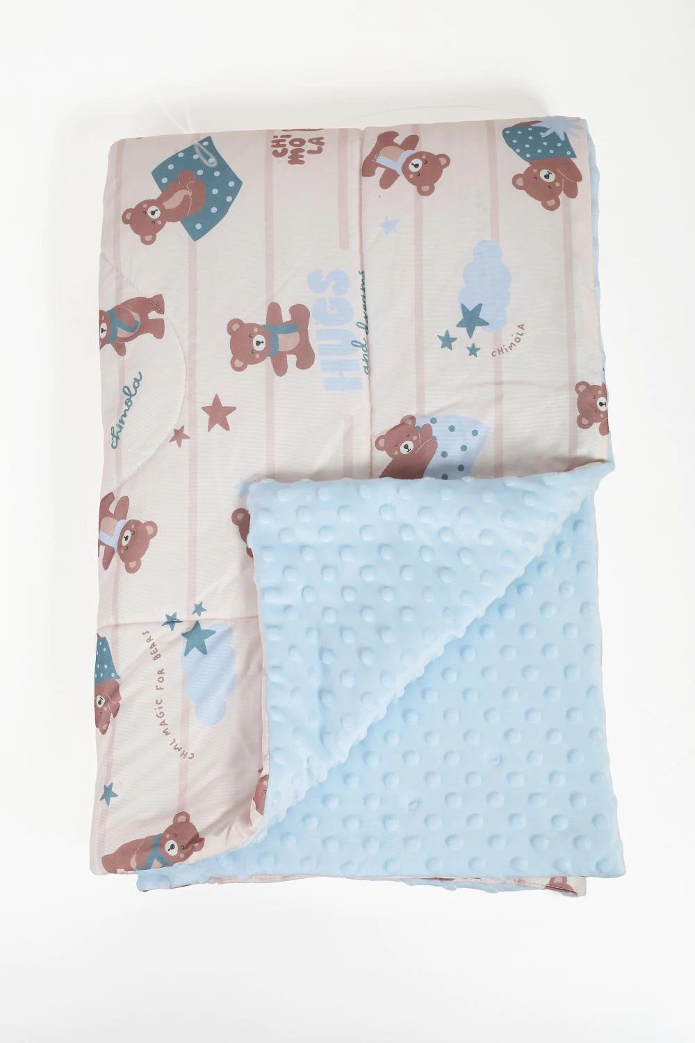 Descripción: COMPOSICIÓN: 80%POLYESTER,20% POLYAMLDE MEDIDAS: 120*150CM CARACTERÍSTICAS: - ACOLCHADO CON 2 TEXTURAS: DE UN LADO AFELPADA, DEL OTRO TELA CON PRINTS ORIGINALES CHIMOLA
