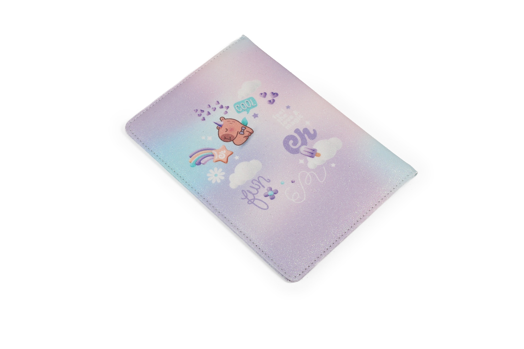 Descripción: Cuaderno cosido A5 (14,5 x 21 cm) con tapas rígidas de cartón + PVC y acabado brillante con glitter, ideal para sumar un toque de fantasía al día escolar. Su diseño full color hace que cada modelo sea único y vibrante. Cuenta con encuadernación cosida al lomo para mayor durabilidad y 48 hojas rayadas en papel bond perfectas para escribir con fluidez sin que se pase la tinta.