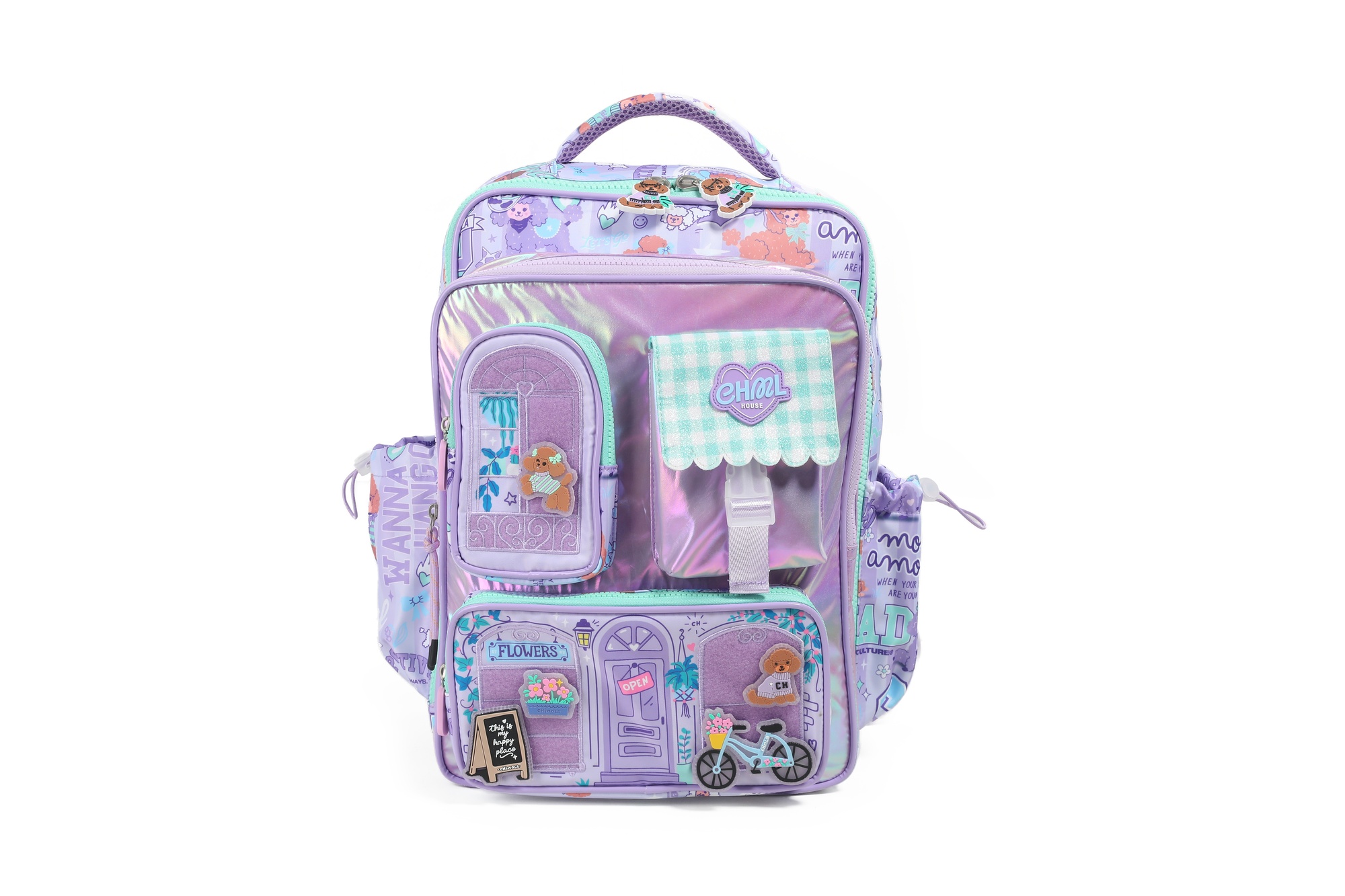 ¡Es súper cute, tiene velcros intercambiables para que decores tu mochila como más te guste y los materiales brillantes y tornasolados le dan a esta mochi un toque especial!