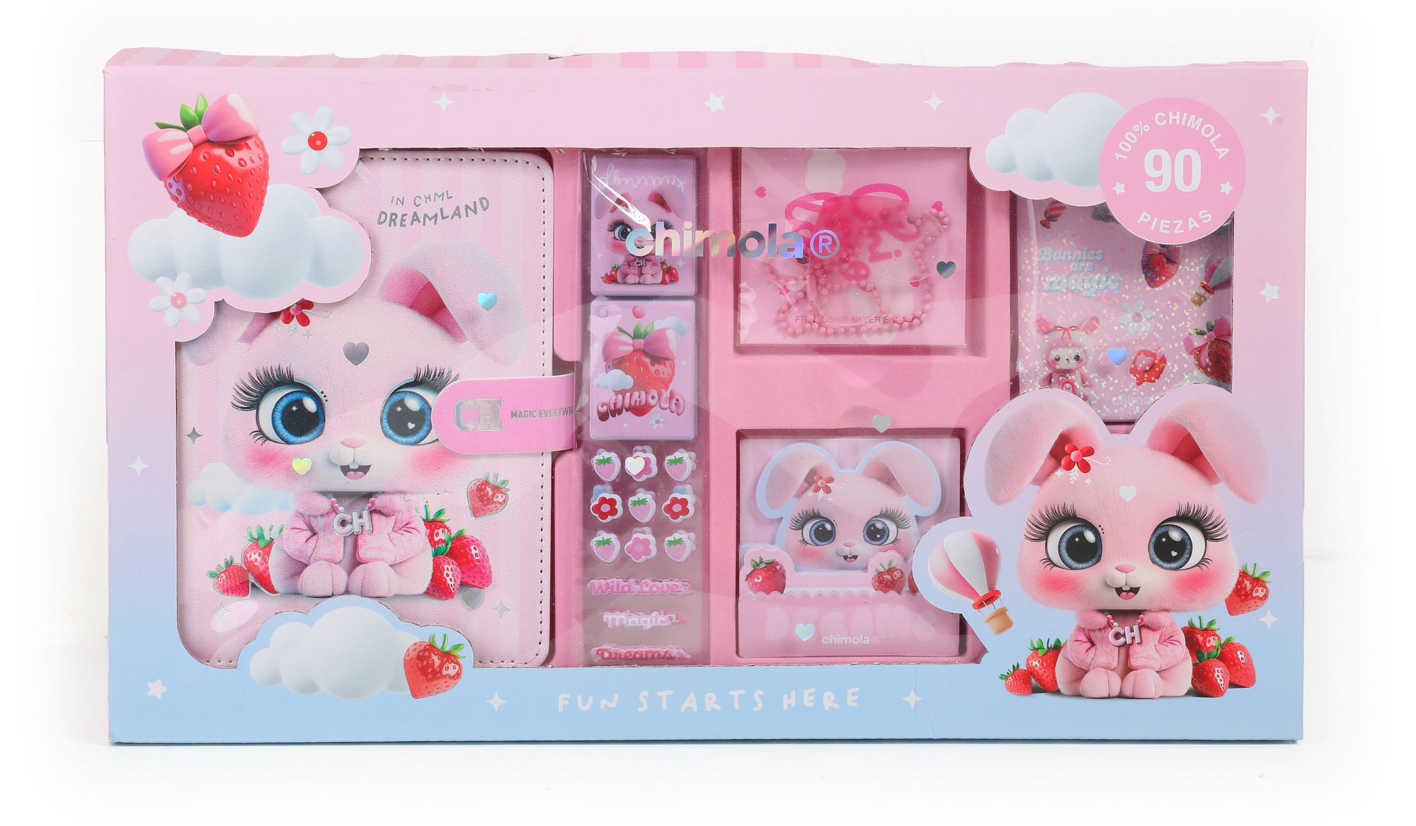Descripción: MEDIDAS: 39,5*12,5CM CONTIENE: - 1 LIBRETA CON STAMPING - 4 STICKY NOTES - 8 PLANCHAS DE STICKERS CON RELIEVE - 60 STICKERS XL - 4 PLANCHAS DE STICKERS HOLOGRÁFICOS - 8 STICKERS CON FONDO TRANSPARENTE - 8 PLANCHAS DE STICKERS FULL COLOR - 1 LLAVER