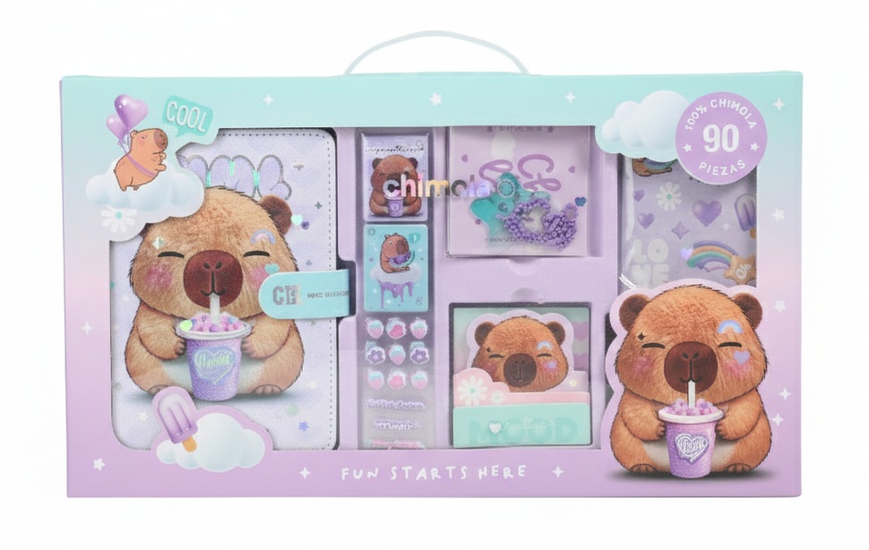 Descripción: MEDIDAS: 39,5*12,5CM CONTIENE: - 1 LIBRETA CON STAMPING - 4 STICKY NOTES - 8 PLANCHAS DE STICKERS CON RELIEVE - 60 STICKERS XL - 4 PLANCHAS DE STICKERS HOLOGRÁFICOS - 8 STICKERS CON FONDO TRANSPARENTE - 8 PLANCHAS DE STICKERS FULL COLOR - 1 LLAVER