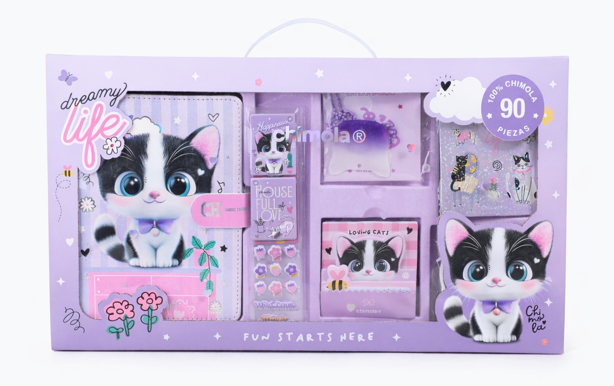 Descripción: MEDIDAS: 39,5*12,5CM CONTIENE: - 1 LIBRETA CON STAMPING - 4 STICKY NOTES - 8 PLANCHAS DE STICKERS CON RELIEVE - 60 STICKERS XL - 4 PLANCHAS DE STICKERS HOLOGRÁFICOS - 8 STICKERS CON FONDO TRANSPARENTE - 8 PLANCHAS DE STICKERS FULL COLOR - 1 LLAVER