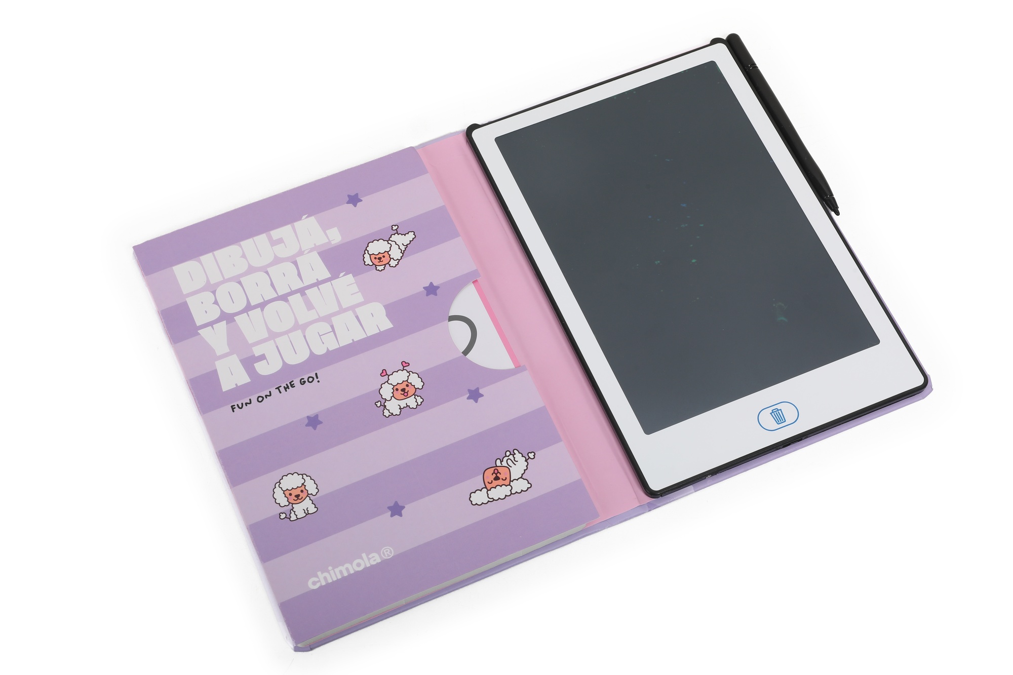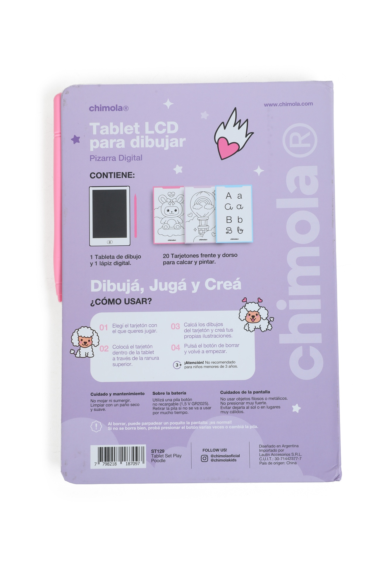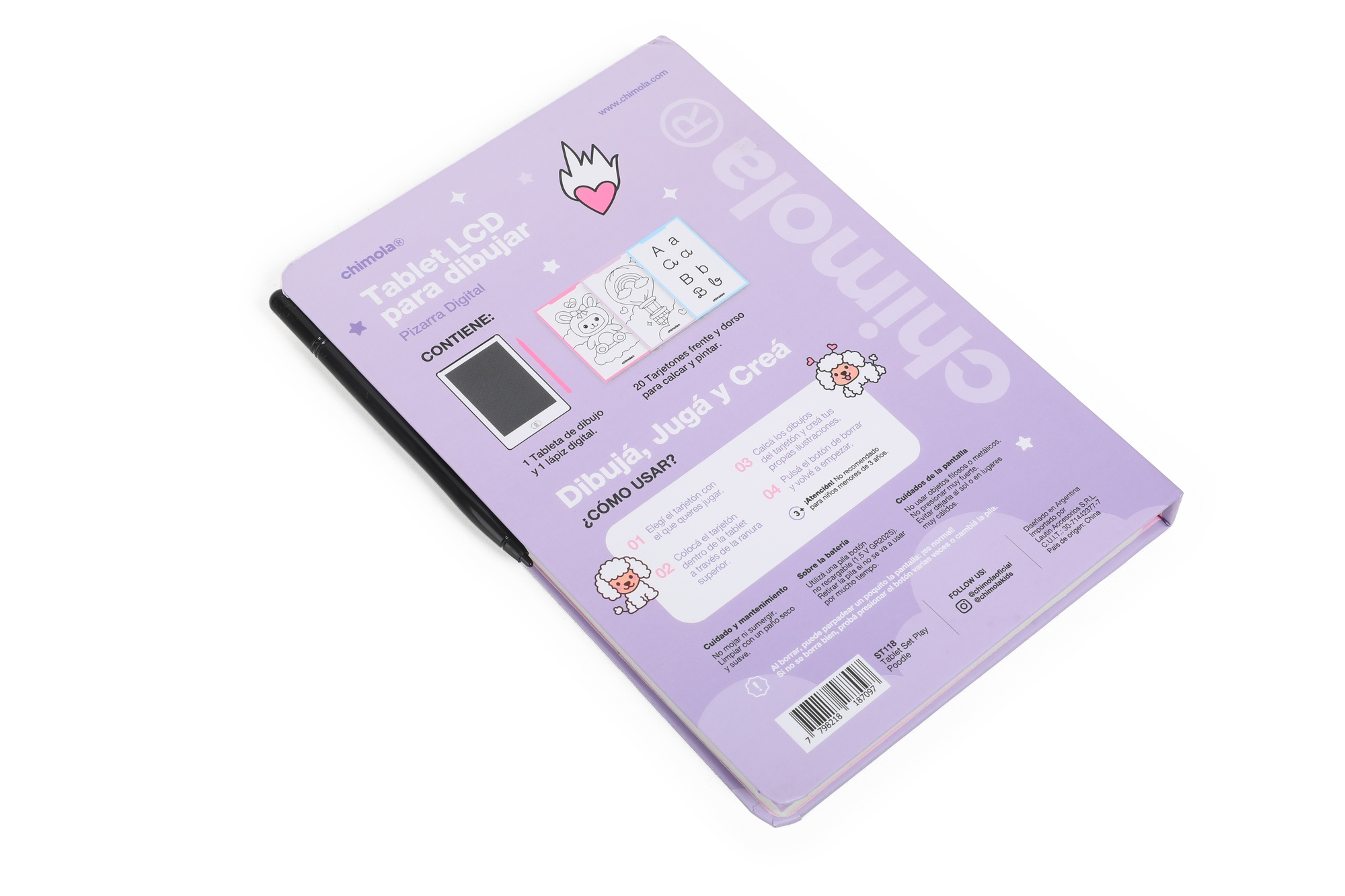 Descripción: TABLET LCD PARA DIBUJAR MEDIDAS: 22*15.5*1.9CM CONTIENE: - 1 TABLETA DE DIBUJO - 1 LÁPIZ DIGITAL - 20 TARJETONES FRENTE Y DORSO PARA CALCAR Y PINTA