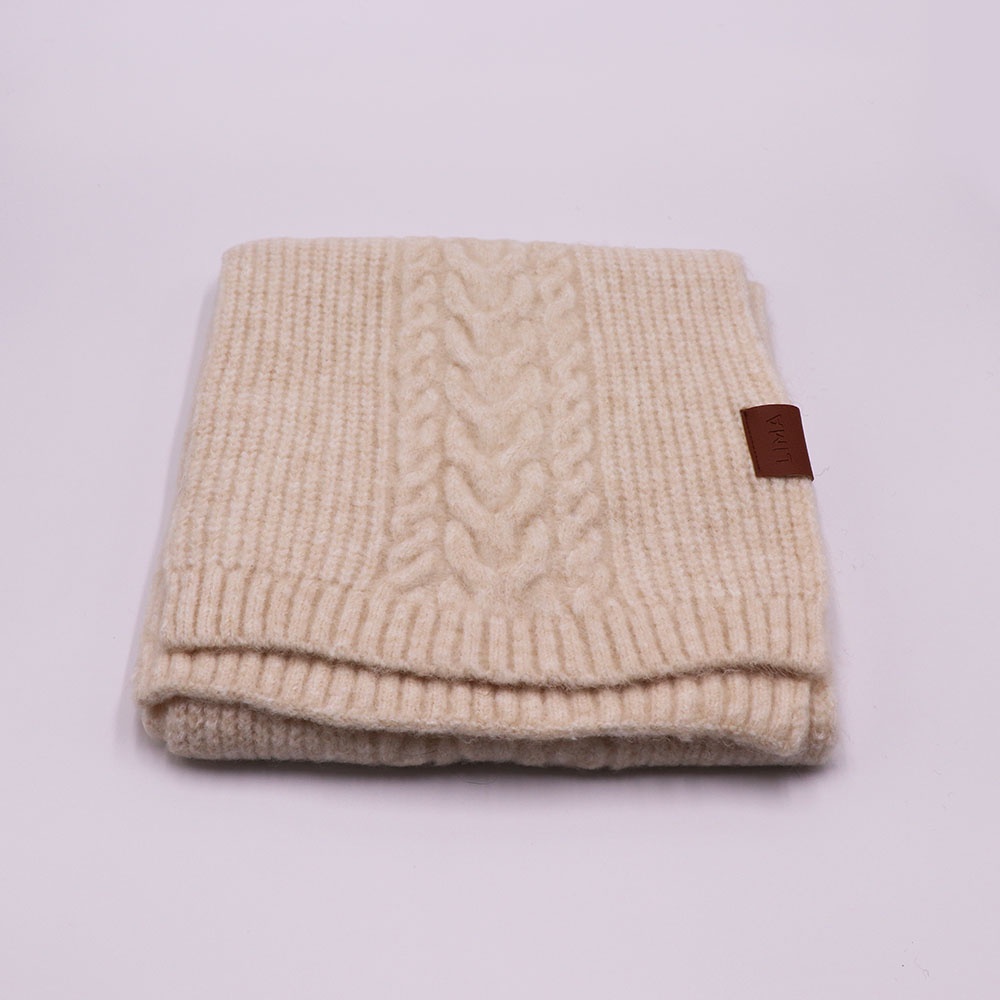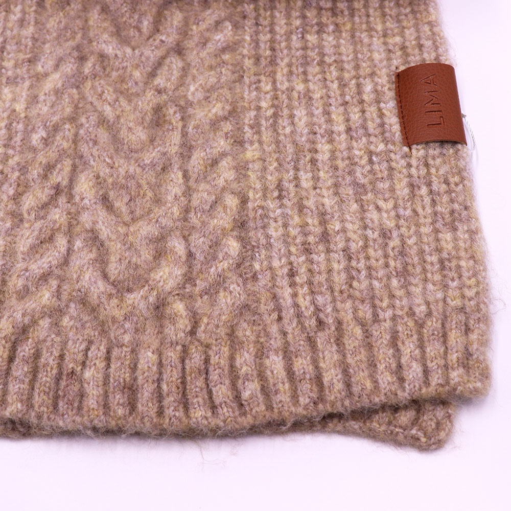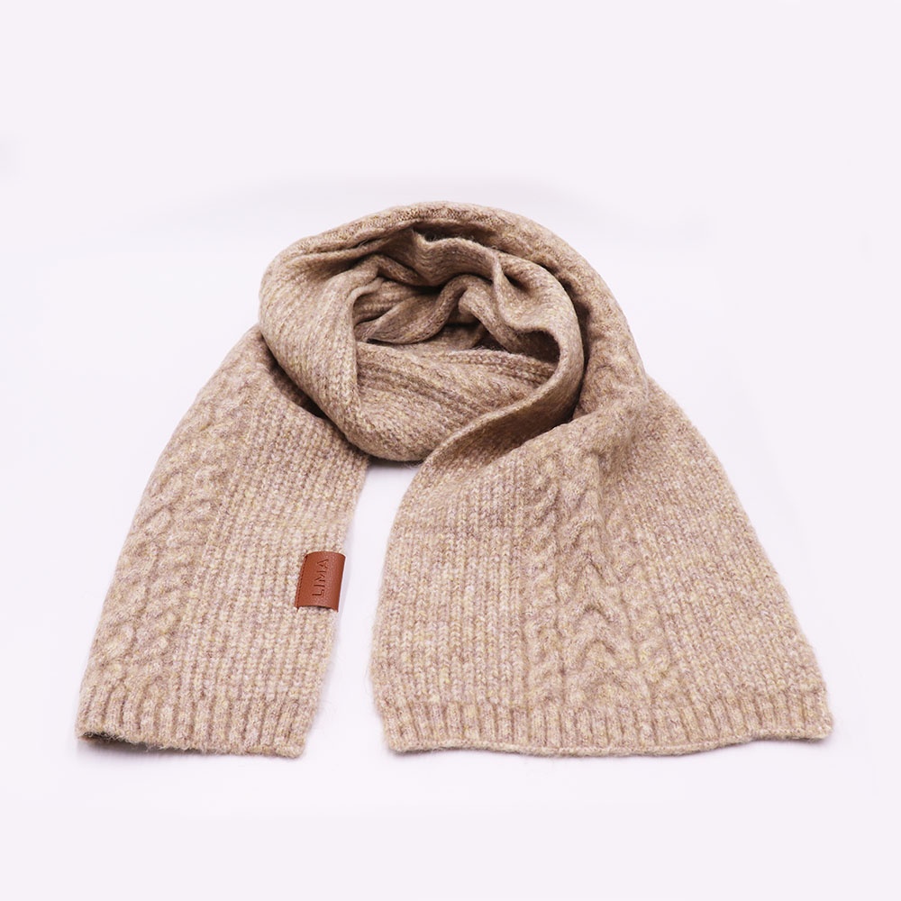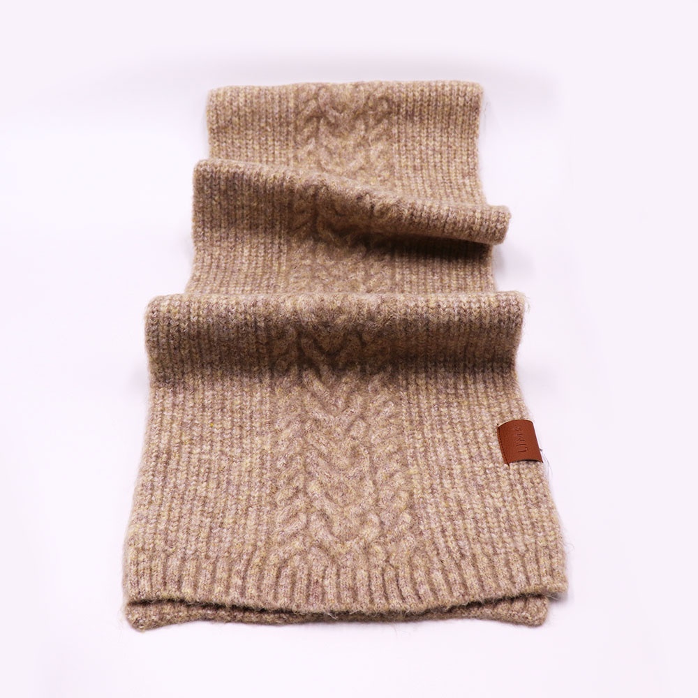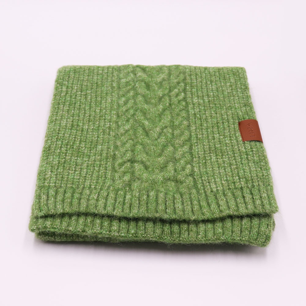 Con ochos y punto marcados, esta bufanda de tejido grueso envuelve con calidez y carácter.