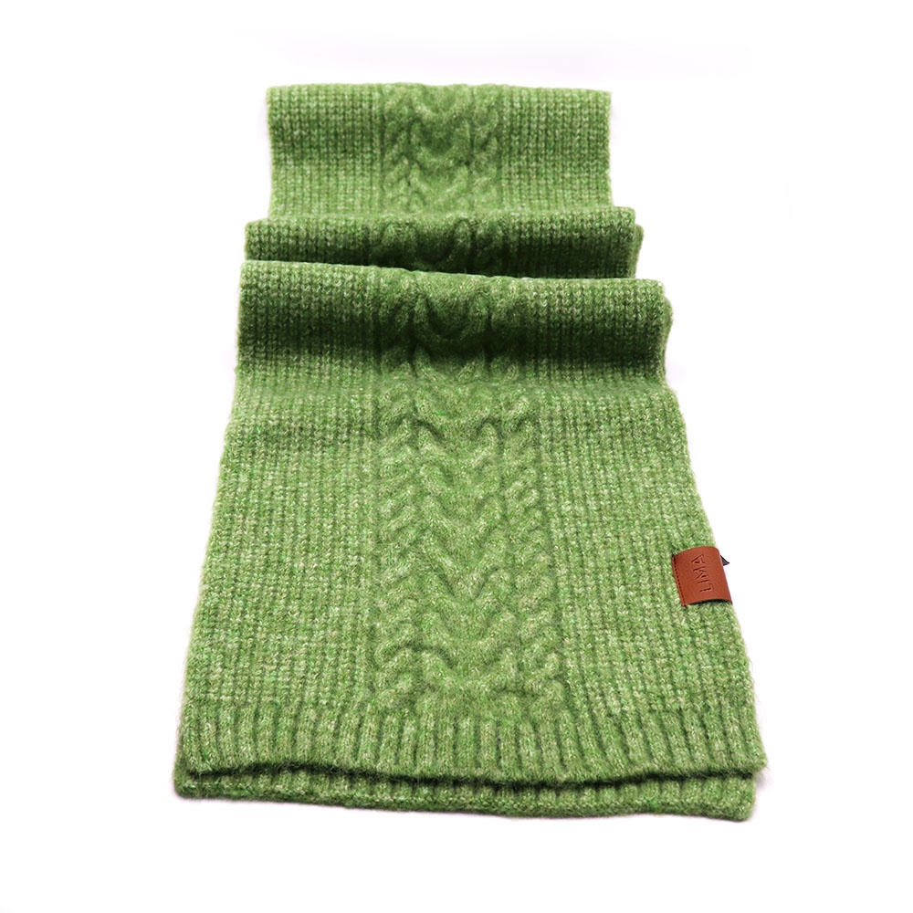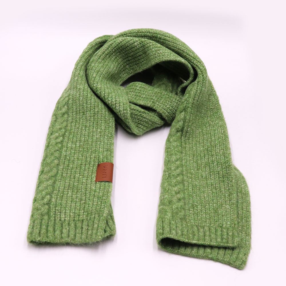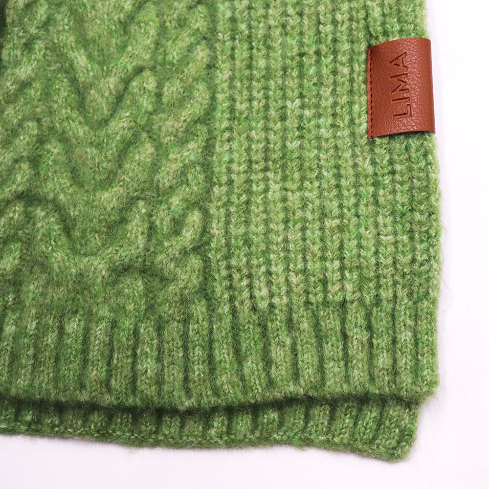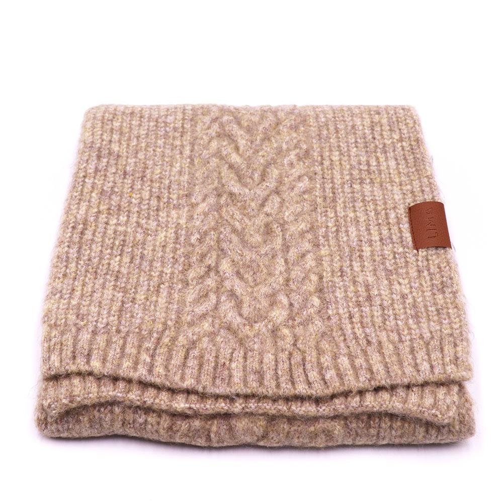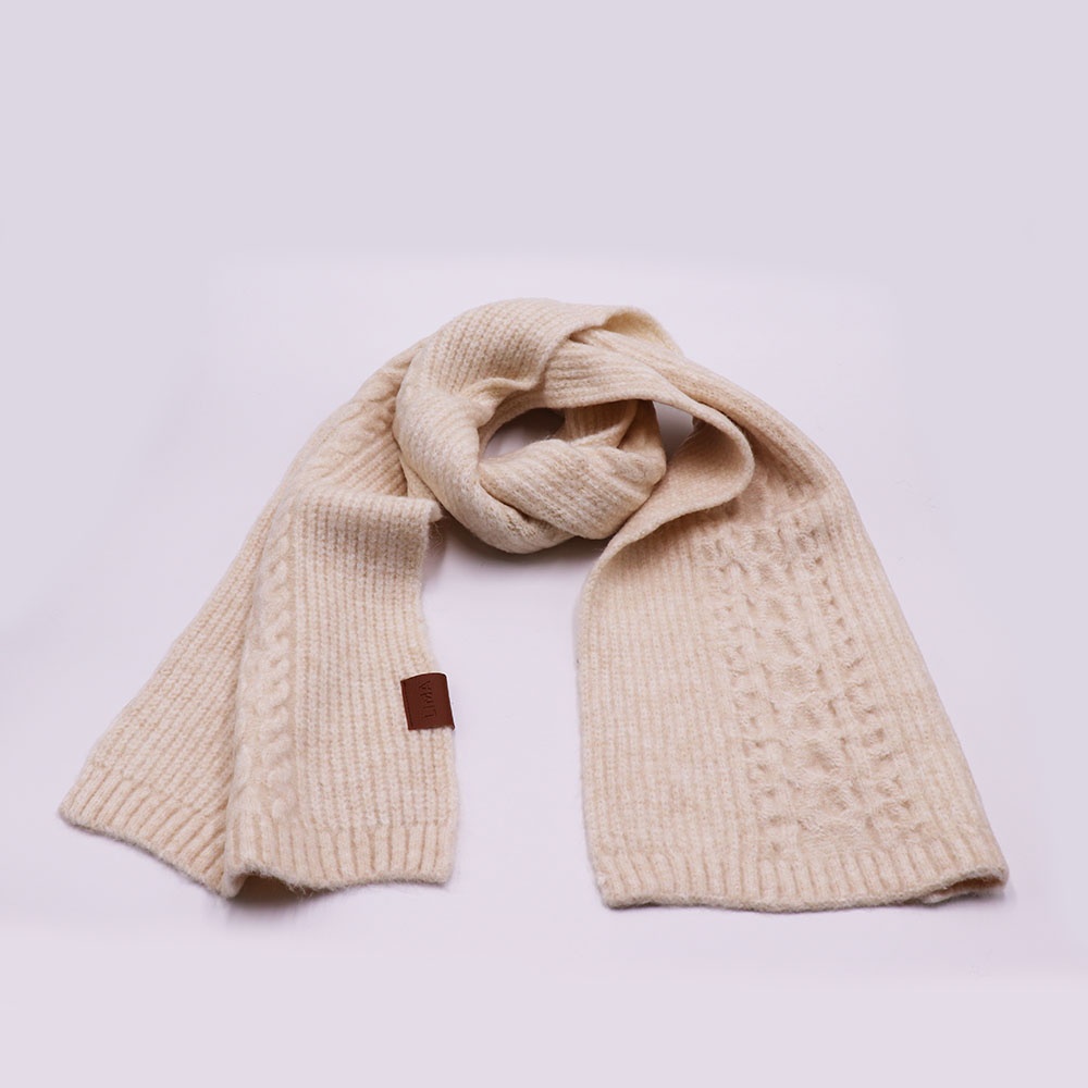 Con ochos y punto marcados, esta bufanda de tejido grueso envuelve con calidez y carácter.