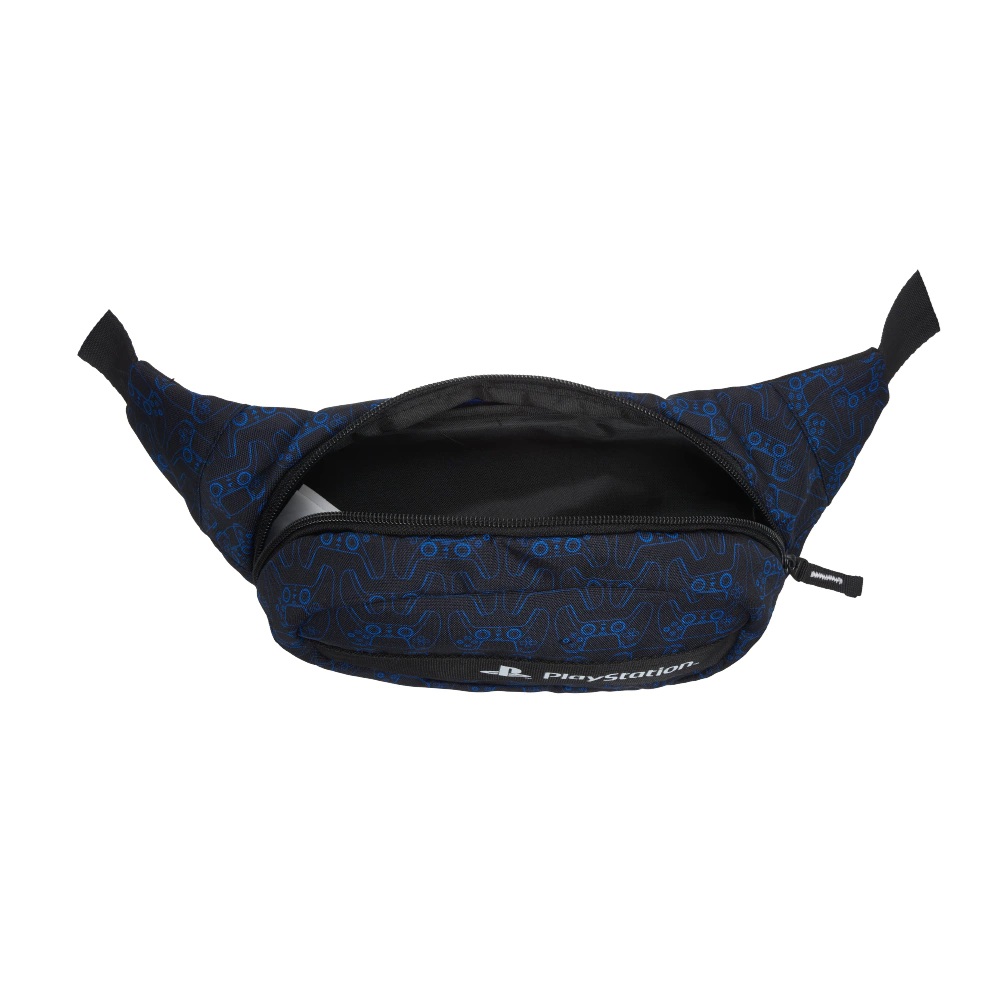 Descripción: Descripción Riñonera CONTROLLER PlayStation Original con Licencia Sony. Colección confeccionada en poliéster estampado y logo impreso. Cierre de plástico,tira cierre en grosgrain con pespuntes zig-zag. Correa regulable y extensible, traba con hebilla con encastre a presión. Medidas aproximadas: Altura:6 cm. Ancho:22 cm. Base:6 cm.