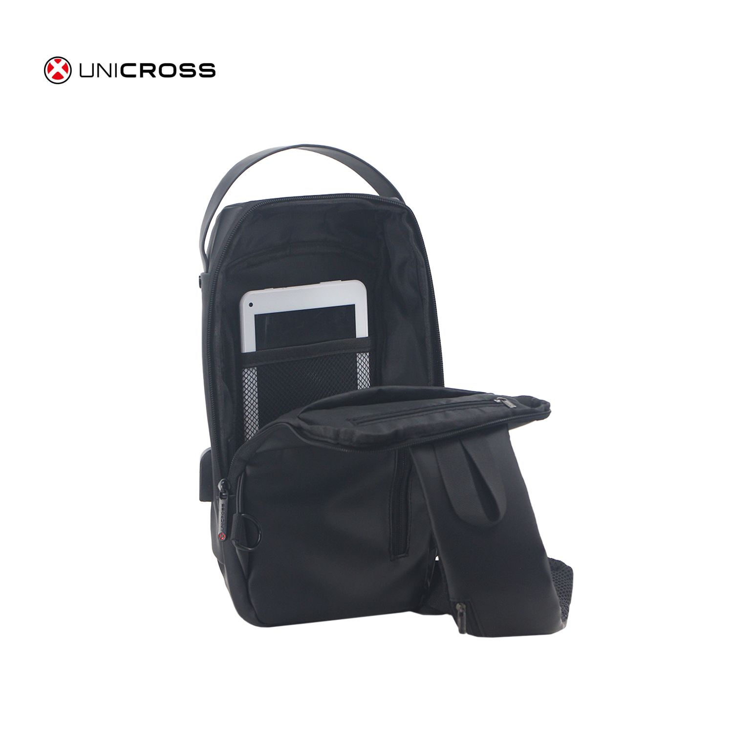 Descripción: Mochila cruzada deportivo urbano, liviano y fácil de transportar - Ideal para uso diario, caminatas y viajes. Material: Polyester. Compartimiento principal con cierre. Un bolsillo frontal con cierre. Forrado en su interior con tela. Tiras y espalda reforzadas con tela merch. Medidas: 16 cm. de largo, 31 cm. de alto y 7 cm. de profundidad.